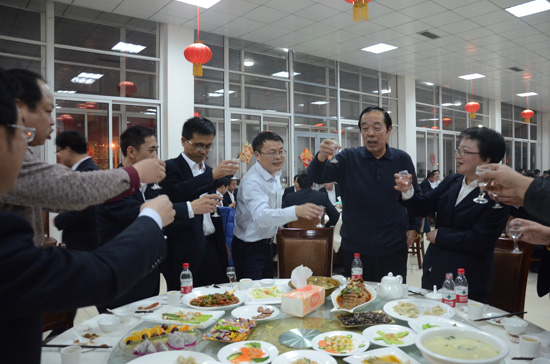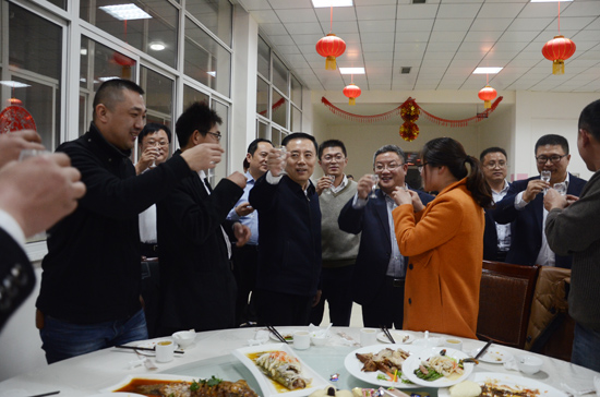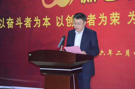 隨后王謹董事長致祝酒詞,王董事長首先代表公司董事會,向一直以來信任和支持榮信煤化的各級領導和朋友們,向與公司一道奮勇攀登的同事及家屬,致以新春的祝福和崇高的敬意。王董事長指出,2015年,是榮信煤化奮力攀登的一年,是挑戰極限的一年。在這不尋常的一年中,我們奮力拼搏,披荊斬棘。我們在砥礪前行中做到了同行業最好水平,黨委政府、股東單位、社會各界為我們點贊!當2015年漸行漸遠,回望一年來走過的路、越過的坎,才驀然發現,身后的崎嶇,在不知不覺中已抬升了我們的高度。