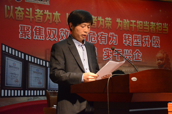 首先,高小明副總經理宣讀了《關于表彰2015年度先進單位和個人的決定》及獲獎名單。在歡快的樂曲聲中,公司領導為受表彰的先進單位和個人進行了頒獎。