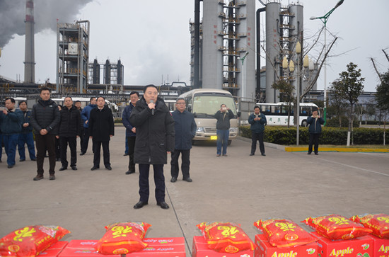 8點50分,司相芳總經理帶領集團公司部分領導來到控制中心樓前,下夜班的員工列隊鼓掌歡迎。司總發表了熱情洋溢的新年講話。司總說到,在新春佳節之際,全體員工為了確保節日期間的安全生產,仍然奮斗在生產一線,正是大家的辛勤付出才成就了我們榮信集團今天的輝煌,并對大家一年來在工作中作出的貢獻表示衷心的感謝,祝大家在新的一年里工作順利、闔家幸福,萬事如意!