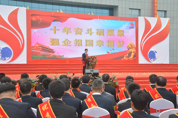 隨后,集團總經理司相芳進行了精彩致辭。司總首先代表集團對全體榮信家人表示衷心祝福,對奮斗者們表示致敬,對優秀奮斗者表示祝賀,并充滿深情地回顧了榮信十年來的不平凡歷程。司總指出,伴隨著國家的跨越發展,榮信穩中求進,走出了一條他無我有、他有我新、他新我全的創新發展之路,實現了從無到有、從小到大的飛速發展,創造了一年一個新企業、一年一個新臺階、一年一個新跨越的歷史奇跡,實現了五個“創造”,即:創造了特有的“榮信速度”、“榮信現象”、“榮信標桿”、“榮信創新發展模式”、“榮信品牌”。