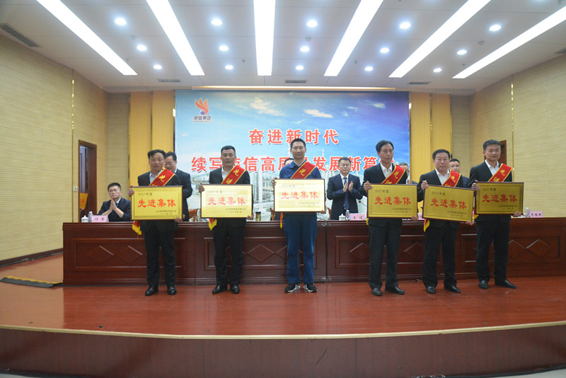 會議由集團董事長王謹主持。財務總監于先長宣讀了《關于授予2017年度先進集體、先進個人及2018年工作追兵集體的決定》。2017年度受到表彰的共有6個先進集體、12個先進班組、10名優秀中層管理干部、5名青年干部標兵、15名技術標兵、28名優秀班組長、60名優秀員工、5名優秀黨員、10名改善之星、15名安全之星、3名金話筒獲得者,并給予3個單位黃牌鞭策。