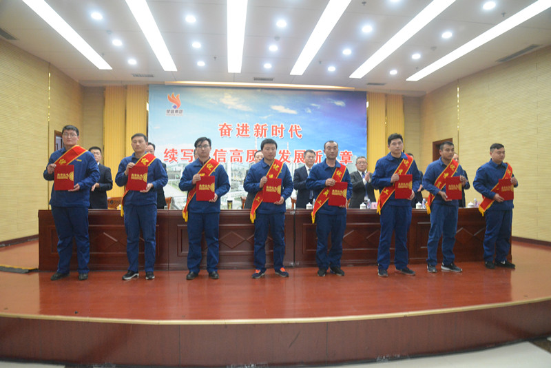 總經理司相芳在會議上發表了以“奮進新時代 續寫榮信高質量發展新篇章”為主題的重要講話。司總指出,2017年,我們收獲頗豐,應該說每個部門、每個單位、每個版塊、每個條線都干的總體很好。安全環保形勢總體平穩,生態效益提升,獲得濟寧市安全文化建設示范企業榮譽稱號。產品產量總體穩中有升,經濟效益仍居同行業最好水平,創榮信歷史新高。生產組織和運行管理穩中向好,各在建項目正緊張有序推進。經營業績突出,抗風險能力進一步增強,榮信品牌不斷提升。2017年榮獲中國產學研合作創新示范企業、山東省節能先進企業、山東省資源循環利用示范基地稱號,喜獲中國制造業企業500強、中國民營企業制造業500強、山東民企100強、山東省石油和化學工業100強及山東煤化工行業10強。特別值得點贊的是,經第三方評價機構現場評價、省級工業和信息化主管部門評估確認以及專家論證、公示等環節,山東榮信集團符合《中國制造2025》綠色制造體系建設標準,剛剛被國家工業和信息化部授予“綠色工廠”稱號,成為了全國綠色制造先進典型示范單位。這些成績的取得,是黨委政府、股東單位和社會各界大力支持的結果,是廣大干部員工共同努力、頑強拼搏的結果,也傾注著員工家屬、廣大客戶、合作伙伴的關心支持。