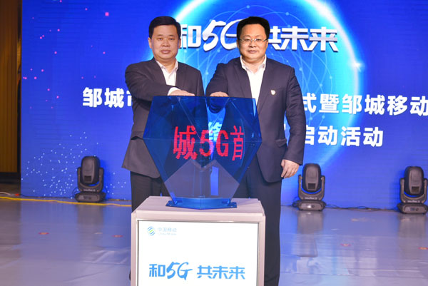 會上,中國移動濟寧分公司黨委書記、總經理鄧克銳,濟寧市委常委、鄒城市委書記張百順先后為啟動儀式致辭。隨后,大會舉行了鄒城“5G”首發儀式,所有參會領導和嘉賓在會議現場共同見證了這一重要時刻,標志著鄒城市5G產業進入加速發展的新階段。
