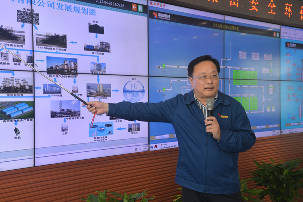 司相芳總經理向姜大明副主任詳細匯報了榮信近年來在推動新舊動能轉換,拉伸產業鏈條,實施升級改造等加快綠色發展方面的情況。姜大明一行對榮信轉型升級,資源綜合利用,綠色發展取得的成績和經驗給予充分肯定。