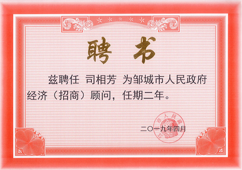 4月24日上午,鄒城市民營(yíng)經(jīng)濟(jì)發(fā)展大會(huì)召開。山東榮信集團(tuán)司相芳總經(jīng)理被聘請(qǐng)為鄒城市人民政府經(jīng)濟(jì)(招商)顧問,并作表態(tài)發(fā)言。