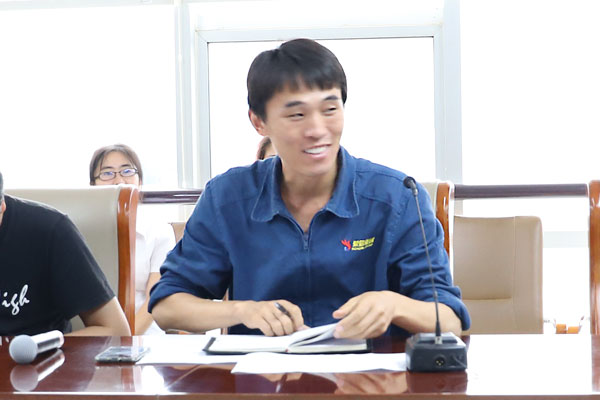 會上,大學生們分別就各自進入榮信的工作情況進行分享,談所學所感、所思所悟,并提出一些工作中遇到的問題及建議。工程技術部部長助理王菲菲、化產分廠副廠長張乃湛先后分享了他們從大學畢業到加盟榮信十多年拼搏奮斗的點點滴滴。
