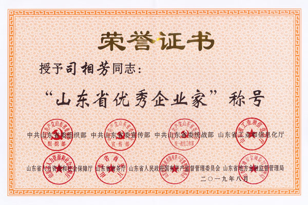 近年來(lái),司相芳同志始終堅(jiān)定“聽(tīng)黨的話(huà),跟黨走,按政府要求做事,依法辦企業(yè)”的方針,認(rèn)真貫徹落實(shí)習(xí)近平新時(shí)代中國(guó)特色社會(huì)主義思想,自覺(jué)增強(qiáng)“四個(gè)意識(shí)”、堅(jiān)定“四個(gè)自信”、做到“兩個(gè)維護(hù)”,以實(shí)際行動(dòng)弘揚(yáng)新時(shí)代企業(yè)家精神和工匠精神,在加快新舊動(dòng)能轉(zhuǎn)換、推動(dòng)高質(zhì)量發(fā)展、踐行社會(huì)責(zé)任等方面走在前列、作出表率。他領(lǐng)航的山東恒信集團(tuán)和山東榮信集團(tuán),緊緊圍繞新時(shí)代“與民同富、與城同興、與國(guó)同強(qiáng)”的歷史使命,始終致力“向最好學(xué)習(xí),同最好對(duì)標(biāo),當(dāng)最優(yōu)同行,做最久基業(yè)”的信念,堅(jiān)定踐行新發(fā)展理念,著力打造平安企業(yè)、誠(chéng)信企業(yè)、和諧企業(yè)、魅力企業(yè)“四個(gè)企業(yè)”,全面塑造高端煤化工與石油化工集約集群、融合發(fā)展的新優(yōu)勢(shì),以“日盛一日、年盛一年”的綜合效益,以“善作善成、做就做最好,行穩(wěn)致遠(yuǎn)”的強(qiáng)大區(qū)域拉動(dòng)力、行業(yè)競(jìng)爭(zhēng)力和財(cái)稅貢獻(xiàn)力,為山東區(qū)域經(jīng)濟(jì)發(fā)展做出了突出貢獻(xiàn)。先后榮獲中國(guó)民營(yíng)企業(yè)500強(qiáng)、中國(guó)制造業(yè)500強(qiáng)、山東企業(yè)100強(qiáng)、國(guó)家級(jí)綠色工廠、國(guó)家級(jí)高新技術(shù)企業(yè)等榮譽(yù)稱(chēng)號(hào)。