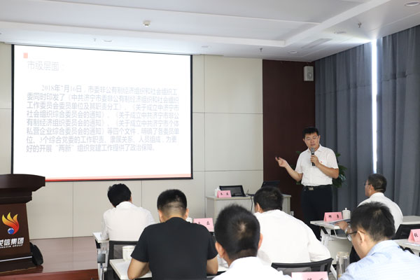 朱磊科長圍繞如何做好非公企業(yè)黨的建設(shè)工作,以黨建在非公企業(yè)的重要意義、重點任務(wù)、重要方法、典型案例四個方面為課題,深刻解讀了非公企業(yè)的黨建政策,闡述了非公企業(yè)的黨建重點任務(wù)措施,明確了企業(yè)黨建活動的方式方法。他講解到,黨組織在職工群眾中要發(fā)揮政治核心作用,在企業(yè)發(fā)展中要發(fā)揮政治引領(lǐng)作用,抓住市委實施“紅帆領(lǐng)航”行動機(jī)會,進(jìn)一步提高非公企業(yè)黨務(wù)干部的政策理論素養(yǎng)和黨務(wù)工作能力,全面提升非公企業(yè)的黨建工作水平,促進(jìn)黨建與業(yè)務(wù)工作和企業(yè)生產(chǎn)經(jīng)營融合發(fā)展。朱磊科長旁征博引,深入淺出,通過剖析,讓大家深受教育,提高了認(rèn)識。泰玻纖維鄒城公司黨委副書記方強(qiáng)在會上介紹了創(chuàng)新活動形式、豐富活動載體、推動企業(yè)黨組織建設(shè)經(jīng)驗做法。