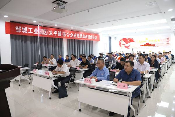 9月18日上午,由鄒城民營企業(yè)服務(wù)隊和鄒城工業(yè)園區(qū)(太平鎮(zhèn))主辦,山東榮信集團(tuán)承辦的非公企業(yè)黨建知識培訓(xùn)會議在榮信科技樓培訓(xùn)中心舉行。濟(jì)寧市委組織部組織二科科長朱磊、鄒城民營企業(yè)服務(wù)隊隊長蘇長祥、鄒城工業(yè)園區(qū)(太平鎮(zhèn))黨委組織委員邱勇出席會議。培訓(xùn)由朱磊科長主講,邱勇主持會議。山東榮信集團(tuán)副總經(jīng)理、黨委委員高小明,各支部書記、委員及園區(qū)(太平鎮(zhèn))34家企業(yè)的黨組織負(fù)責(zé)人、黨務(wù)工作者等共計70余人參加會議。