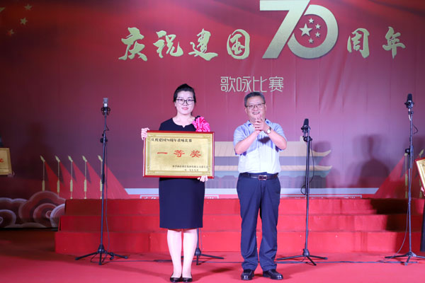 賽前,集團公司黨委委員、副總經理高小明發表致辭。他說,今年是我們偉大祖國70華誕,也是榮信集團建業12周年。12年來,集團始終堅持“聽黨的話,跟黨走,按政府要求做事,依法辦企業”的方針,不忘初心、牢記使命,與祖國同行、與時代同步,譜寫了“與民同富、與城同興、與國同強”的精彩篇章。他希望大家唱響時代最強音,為祖國放歌,賽出水平、賽出風格,展現新時代榮信人的風采。
