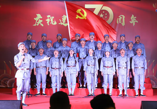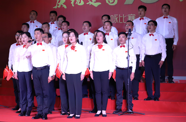 參加比賽的11支隊伍,身著盛裝,懷著對黨對祖國赤忱的熱愛,深情演繹出榮信人奮發向上的昂揚斗志。伴隨著悠揚的旋律,各參賽隊通過獨具匠心的編排,采取領唱、朗誦、合唱、伴舞等多種藝術表現形式,緊扣愛黨愛國主題,演唱了《在燦爛的陽光下》《中國,中國,鮮紅的太陽永不落》《英雄贊歌》《沒有共產黨就沒有新中國》《我們走在大路上》等膾炙人口的經典歌曲,用大氣磅礴的歌聲唱響了榮信人對祖國的深情祝福,也唱響了榮信人對美好未來的憧憬和希望。整場比賽精彩紛呈、高潮迭起,愛國情、強企夢在心頭涌動,大家都深受感動,引起了評委和觀眾的強烈共鳴。