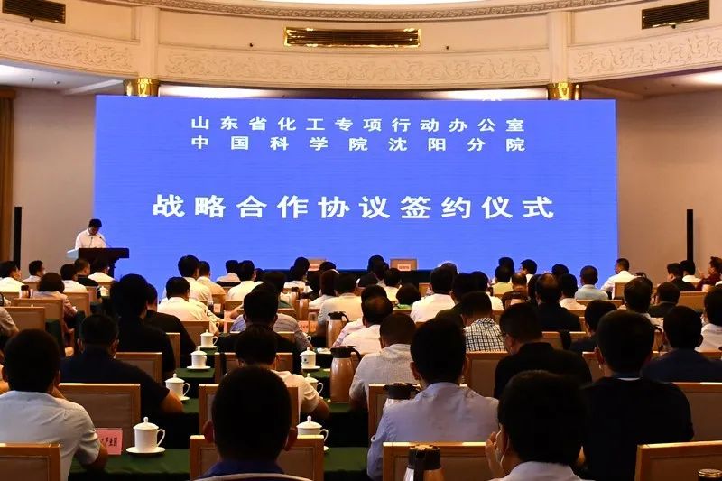 6月18日,山東省化工專項行動辦公室與中國科學院沈陽分院戰略合作協議簽約儀式在濟南南郊賓館舉行,并舉辦專題報告會。山東省副省長凌文,沈陽分院院長韓恩厚,副院長馬越紅,山東能源研究院院長、中國工程院院士劉中民,省化專辦副主任李莎,青島能源所黨委書記彭輝,黨委副書記許輝,副所長蔡睿,延長中科(大連)能源科技股份有限公司董事長鄭拴辰 、總經理任曉光, 濟寧市委常委、鄒城市委書記張百順,濟寧化專辦領導李亞東,山東恒信集團董事長、榮信集團總經理司相芳、山東榮信集團總工程師杜漢雙出席簽約儀式。